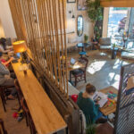 Reserved cubicle-free space with the sights and sounds of a cafe, flooded in natural light and creative energy.